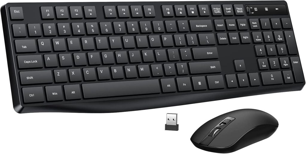 Wireless Keyboard and Mouse Combo, Lovaky 2.4G Full-Sized Ergonomic Keyboard Mouse, 3 DPI Adjustable Cordless USB Keyboard and Mouse, Quiet Click for Computer/Laptop/Windows/Mac (1 Pack, Black)
